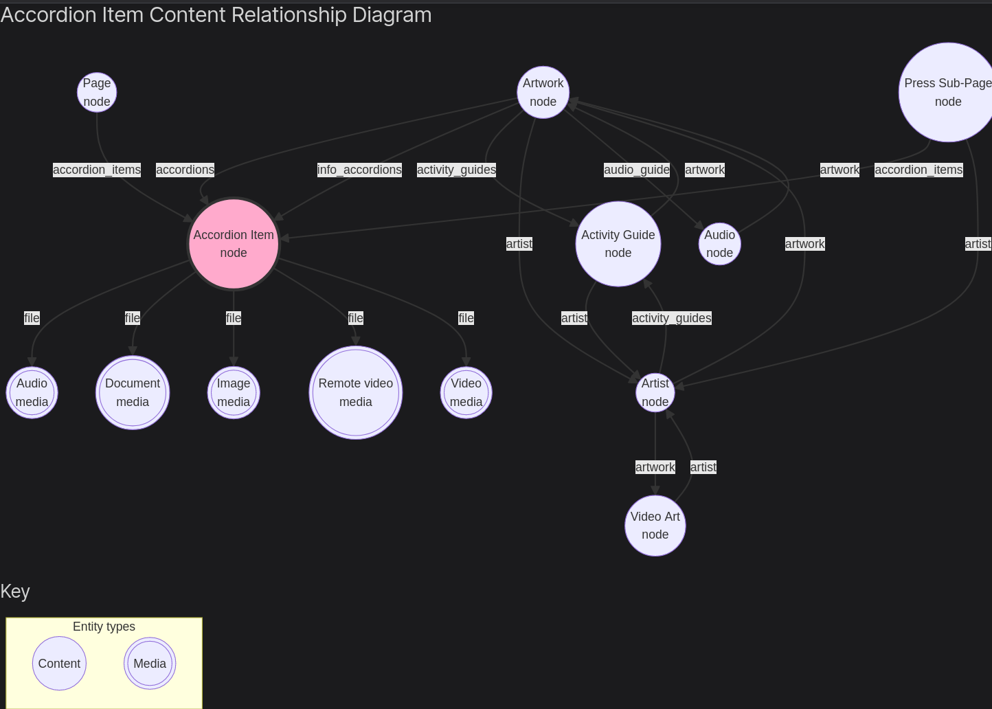 In Drupal, content is implemented as entities, with Node being the class for common content types.